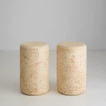 “Inspired by childhood memories of my grandmother’s Chinese ceramic stool, the creation of a series of simple stools within the lime plaster collection pays homage to the enduring impact of this seemingly modest object. I vividly recall the irresistible allure of that stool – the way its surface invited touch and discover, its weight grounding it firmly to the ground yet beckoning to be explored in various ways, including climbing and playing as a child. As I reflect on that cherished piece from many years ago, I now appreciate its versatility and aesthetic appeal in a new light. Each stool within this series embodies this appreciation, blending intricate patterns with a smooth, stone-like surface that begs to be touched. These stools carry with them the legacy of that beloved ceramic stool, infusing every space they inhabit with a sense of calm and nostalgia.”