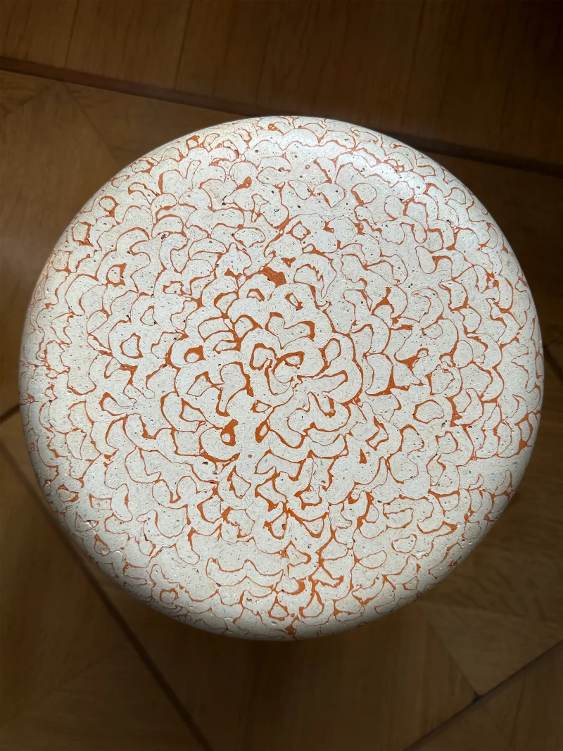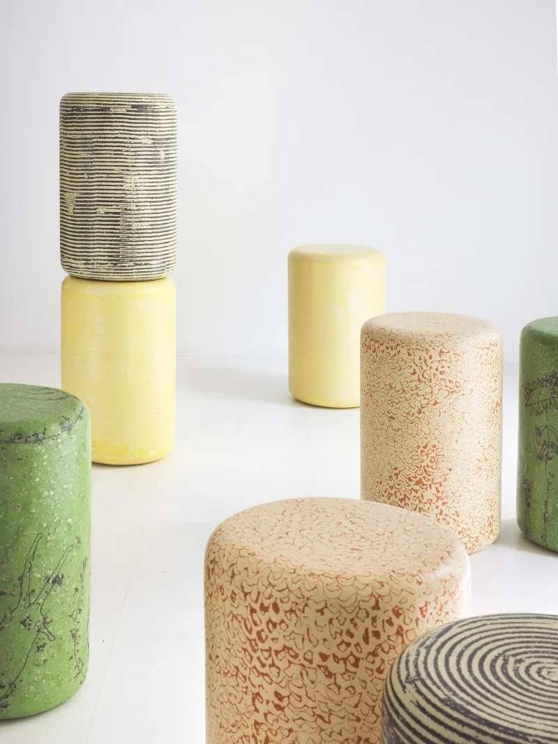 “Inspired by childhood memories of my grandmother’s Chinese ceramic stool, the creation of a series of simple stools within the lime plaster collection pays homage to the enduring impact of this seemingly modest object. I vividly recall the irresistible allure of that stool – the way its surface invited touch and discover, its weight grounding it firmly to the ground yet beckoning to be explored in various ways, including climbing and playing as a child. As I reflect on that cherished piece from many years ago, I now appreciate its versatility and aesthetic appeal in a new light. Each stool within this series embodies this appreciation, blending intricate patterns with a smooth, stone-like surface that begs to be touched. These stools carry with them the legacy of that beloved ceramic stool, infusing every space they inhabit with a sense of calm and nostalgia.”