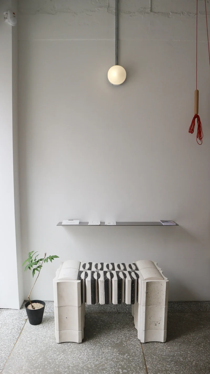HUI tiles and furniture are meticulously crafted from recycled oyster shells. By processing and mixing discarded shells collected from Korea’s coastal waters, we create durable materials that are shaped into tiles with refined textures. While numerous works engage with themes of nature and sustainability, our objective was to go beyond these concepts. To realize this vision, we developed three distinct tiles—H, U, and I—that enable a wide range of architectural applications. Our intention was to create not simply an object, but a modular unit that offers infinite design possibilities, much like how a single Lego piece can serve as the foundation for a complex structure.
