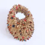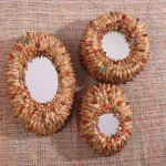 Introducing the “Harmony Bloom Mirror” by MitiMeth. A unique creation of the MitiMeth studio designed by Marta Giardini and powered by co/rizom. Handcrafted from invasive water hyacinth stems, upcycled textile waste, and papier-mache, this mirror exemplifies sustainability and elegance. The shape of this mirror is like a ‘Bàtá which is the Yorùbá word for shoe. Each piece is meticulously created by skilled artisans, ensuring a unique blend of natural textures and vibrant colors. The Hyacinth Bloom Mirror not only serves as a functional decor item but also as a statement piece that reflects your commitment to environmental preservation and social impact. Perfect for adding a touch of rustic charm and modern sophistication to any space, this mirror is a testament to the beauty of upcycled materials and thoughtful design. Embrace the Bloom of nature and artistry with the Hyacinth Bloom Mirror by MitiMeth, where every glance reveals the story of sustainability and creativity. Ideal for eco-conscious consumers seeking unique, handmade decor that makes a difference.