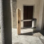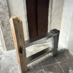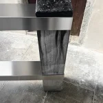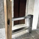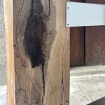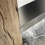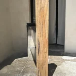 Ice Beech Center Piece, that holds Stainless Steel Shelves – counter parted with a Stained Concrete Column, split into three parts.