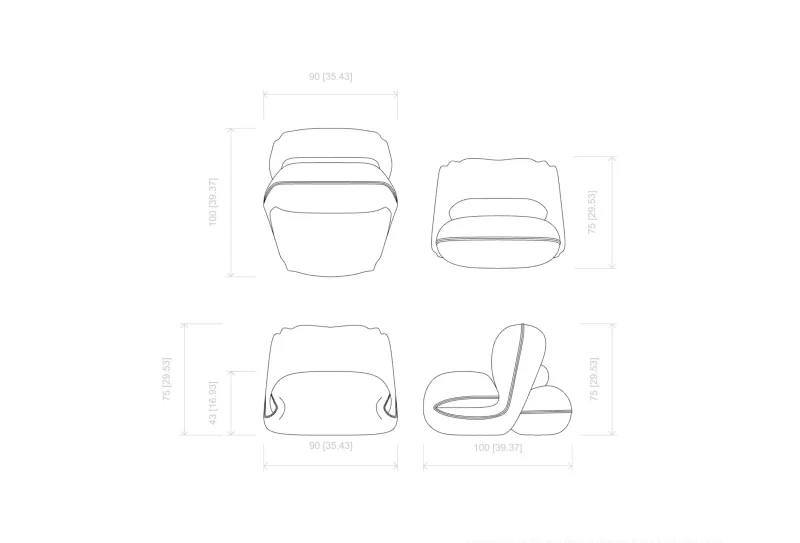 You can combine the corner lounge chair with a daybed (chaise longue), loveseat, lounge chair, armrests and a pouf, see my other pieces. The dimensions and the fabric of the chair can be customized to suit your preferences. You can change the seat depth, standard 55cm or comfort 75cm. And you can create a customized element sofa. Please contact me for more information.