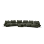 You can combine the curved modular sofa with a loveseat, lounge chair, armrests and a pouf, see my other pieces. The dimensions and the fabric of the chair can be customized to suit your preferences. You can change the seat depth, standard 55cm or comfort 75cm. And you can create a customized element sofa. Please contact me for more information.
