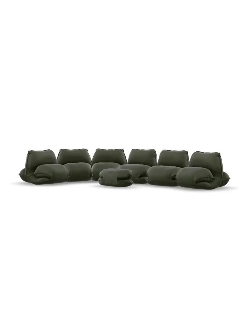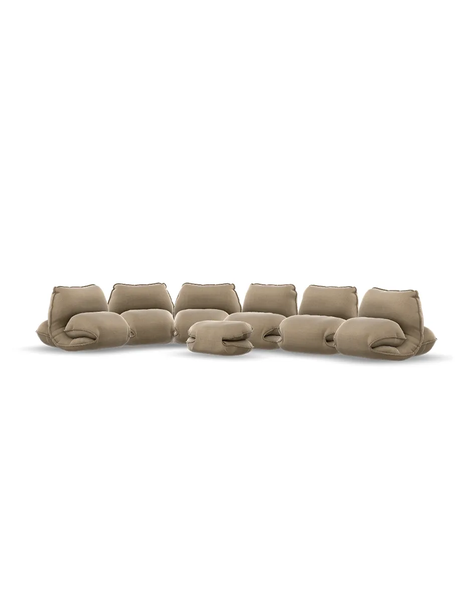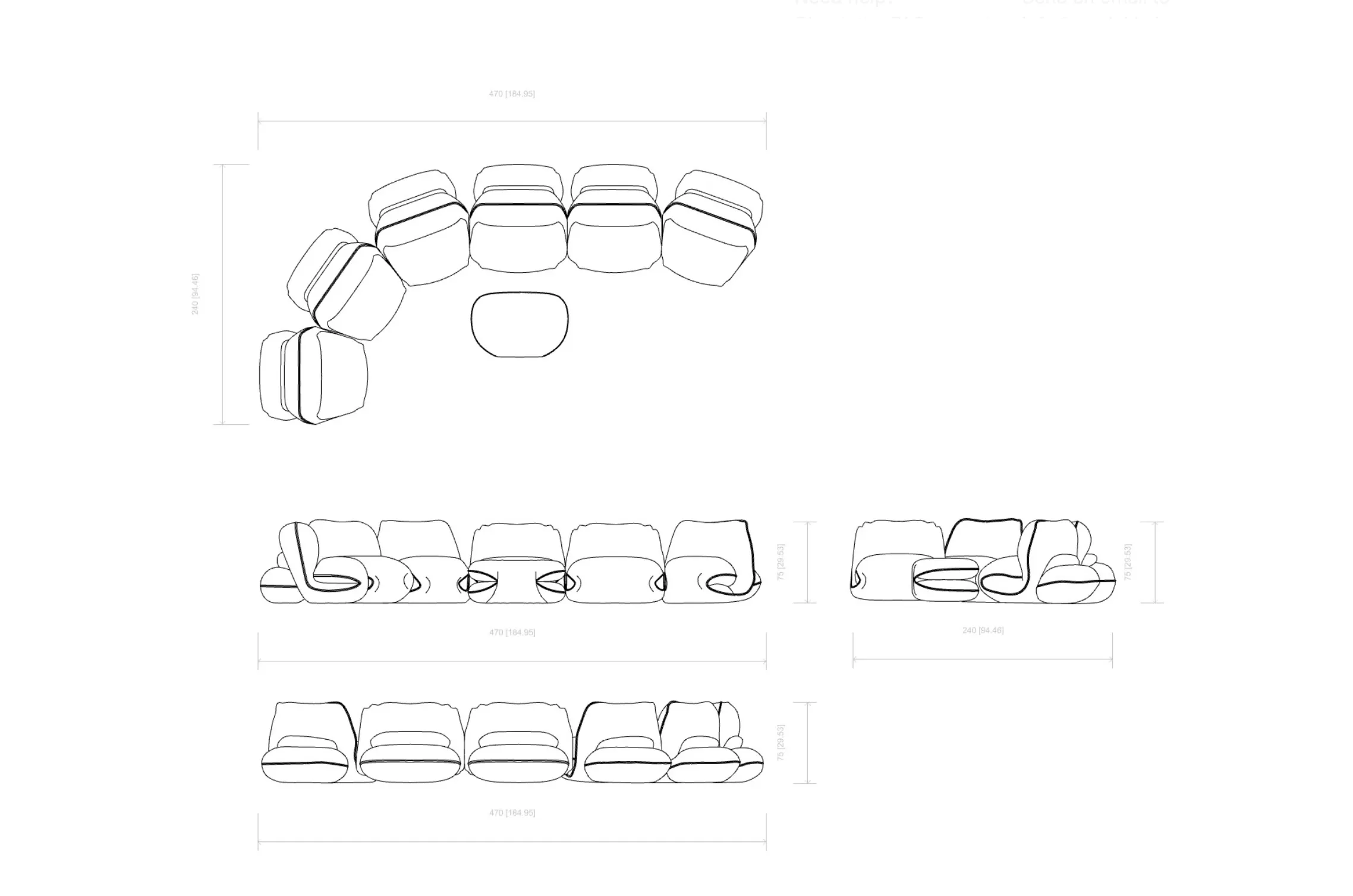 You can combine the curved modular sofa with a loveseat, lounge chair, armrests and a pouf, see my other pieces. The dimensions and the fabric of the chair can be customized to suit your preferences. You can change the seat depth, standard 55cm or comfort 75cm. And you can create a customized element sofa. Please contact me for more information.