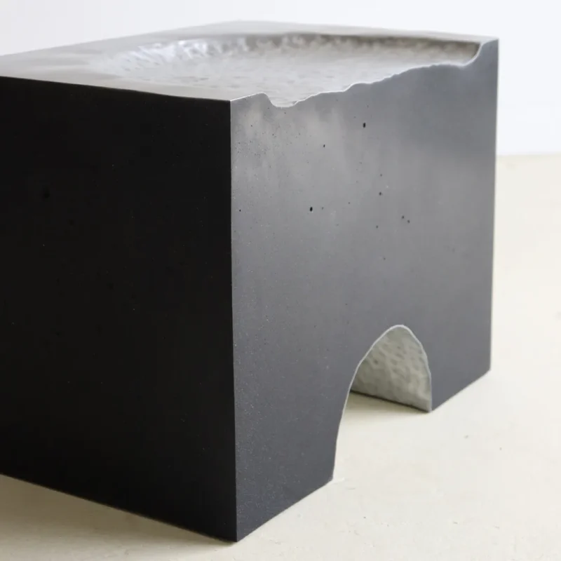 Rather than smoothing away imperfections, Emilia embraces marks left by tools, gravity, and casting. Her objects carry visible traces of their making — cracks, bubbles, and seams that speak to the physical relationship between maker and material. Each piece sits between sculpture and design: functional in intention, but unapologetically raw in appearance.