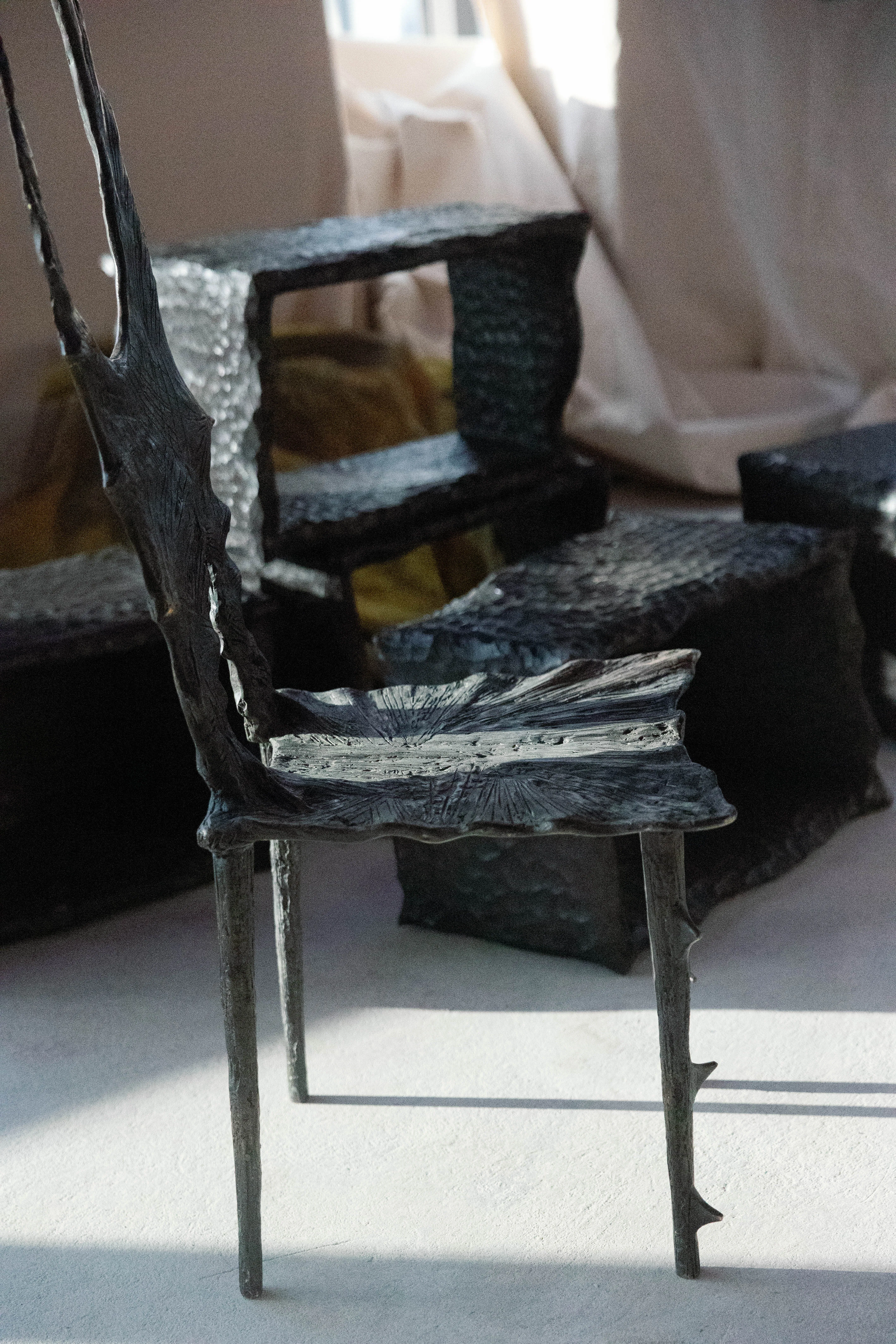 Forged in bronze yet shaped with the fluidity of a gesture, the Iele Chair captures the essence of hedonism. It is a devotion to beauty, to pleasure, and to the sensual experience of space. Its curves invite touch and its posture invites presence.