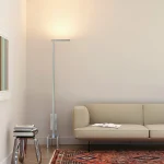 The illuminator by Layzers, is an aluminum floor lamp that throws indirect light upward to envelop any space with a soft glow. This fixture utilizes a tunable white LED module that is programmed to correlate color temperature and brightness. This allows the architectural-grade LED to produce the most human-centric light output possible. To further the human connection, the light output is controlled with a physical dimming knob.