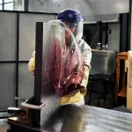 In Impossible Relic, Sacco continues her tactile investigation into the friction between material memory and contemporary disconnection. A CNC-cut marble I-beam—precise, industrial, immovable—serves as an altar of sorts, bearing the weight of a molten gesture: hand-blown alabaster glass draped like fabric, frozen mid-fall. The juxtaposition is stark but not cold. It is as if time has been paused at the very moment a relic becomes one—when function surrenders to myth, and material asserts its right to meaning beyond utility.