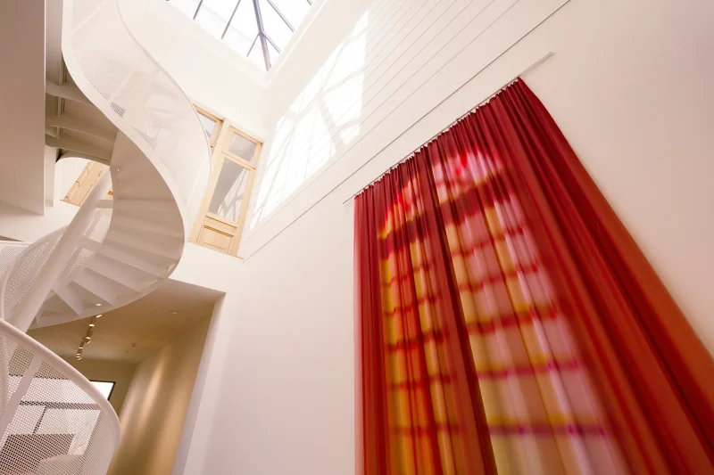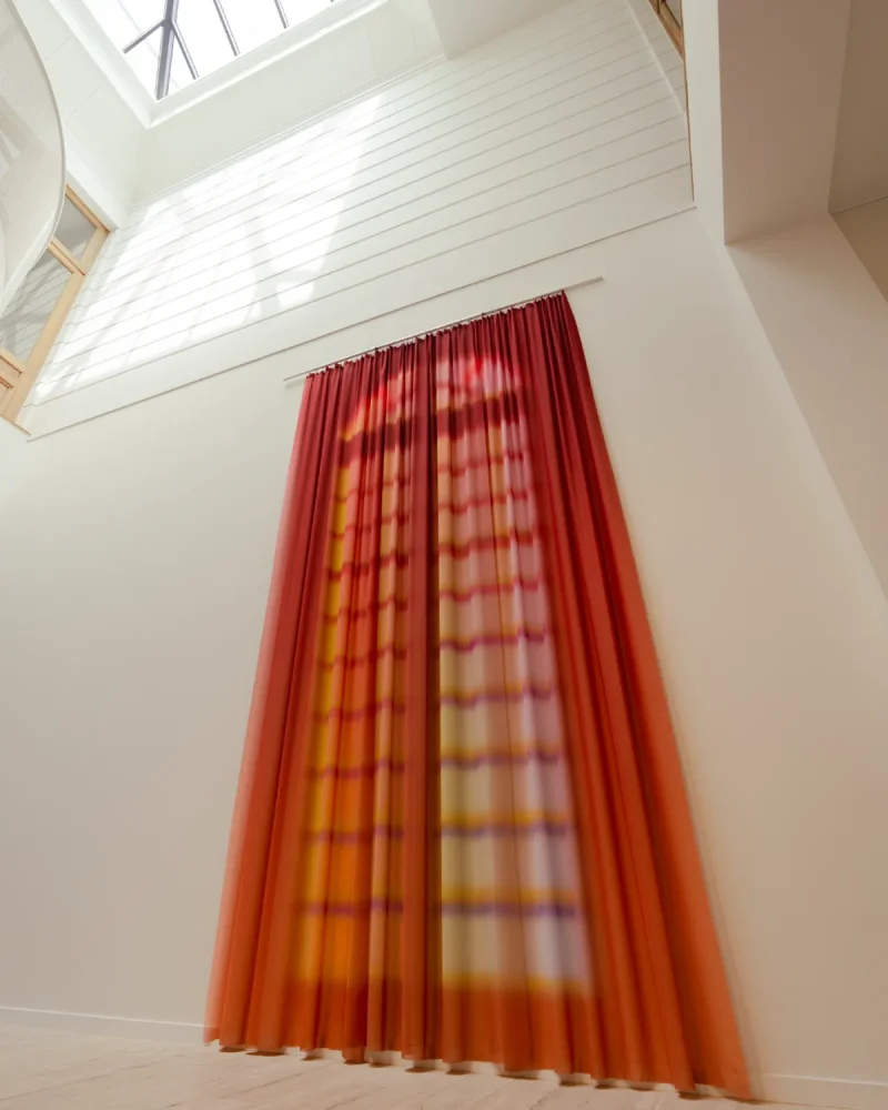 Imprint can be fully customized by the designer: including color, height, width, and even window shapes. Existing windows in the presentation space can be mirrored in the fabric design, creating a harmonious connection between the work and its surroundings.