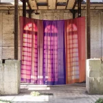 Yvonne Mak’s installation features printed textiles that mimic sun-bleached curtains, shaped by years of sunlight exposure. Faded patterns appear on the fabric, creating the illusion of windows where there are none. This subtle trick of the mind, suggesting more daylight and openness, can enhance feelings of wellbeing and happiness indoors.
