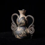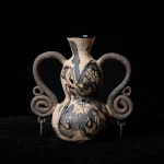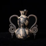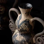 This stoneware sculptural vase by Vale Ro, meticulously handbuilt using brown clay, is more than just a vessel—it’s a storyteller. Each vase from this series is born from a rhythmic dance of repetitive patterns, where the artist’s hands shape memories into the clay. The interplay of oxides and glazes adds depth and texture, capturing moments from the past, present, or future. Every vase holds a unique narrative, echoing tales of time and emotion, inviting you to explore the stories embedded within its form.