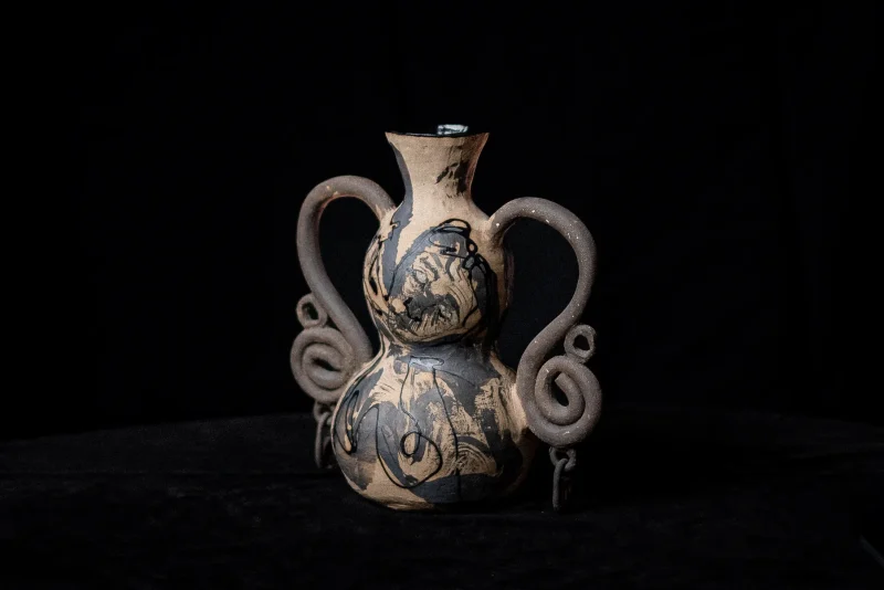 This stoneware sculptural vase by Vale Ro, meticulously handbuilt using brown clay, is more than just a vessel—it’s a storyteller. Each vase from this series is born from a rhythmic dance of repetitive patterns, where the artist’s hands shape memories into the clay. The interplay of oxides and glazes adds depth and texture, capturing moments from the past, present, or future. Every vase holds a unique narrative, echoing tales of time and emotion, inviting you to explore the stories embedded within its form.