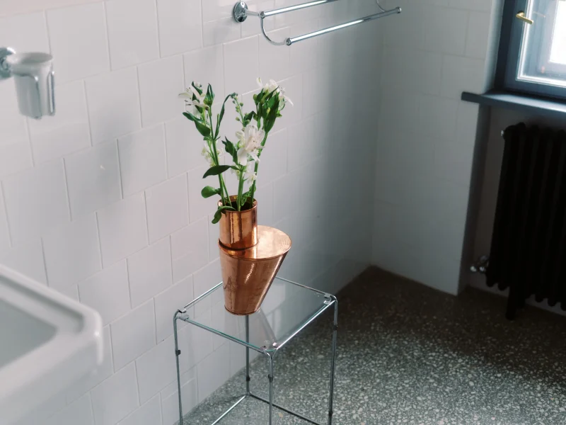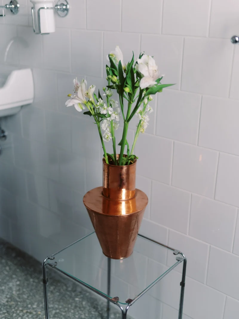“Inner side” is a series of vases, made together with coppersmith Victor Caldarar and Victor Dulgheru, during an incubator powered by co/rizom. The objects are handmade in the traditional technique of hammered copper and they each have an inner and an outer layer of material. The walls of each object are doubled, having a gap of air in between. Once the volume is filled with water, the perception of the user is deformed by the fact that the water does not touch the outer layer, as well as by the center of weight placed elsewhere than expected.
