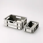 Inoxbox is based on an industrial transport crate whose shape remains unchanged, while the material has been replaced. The contrast between mass production and custom manufacturing, between everyday life and autonomy, transforms the crate into a new object with a familiar form.