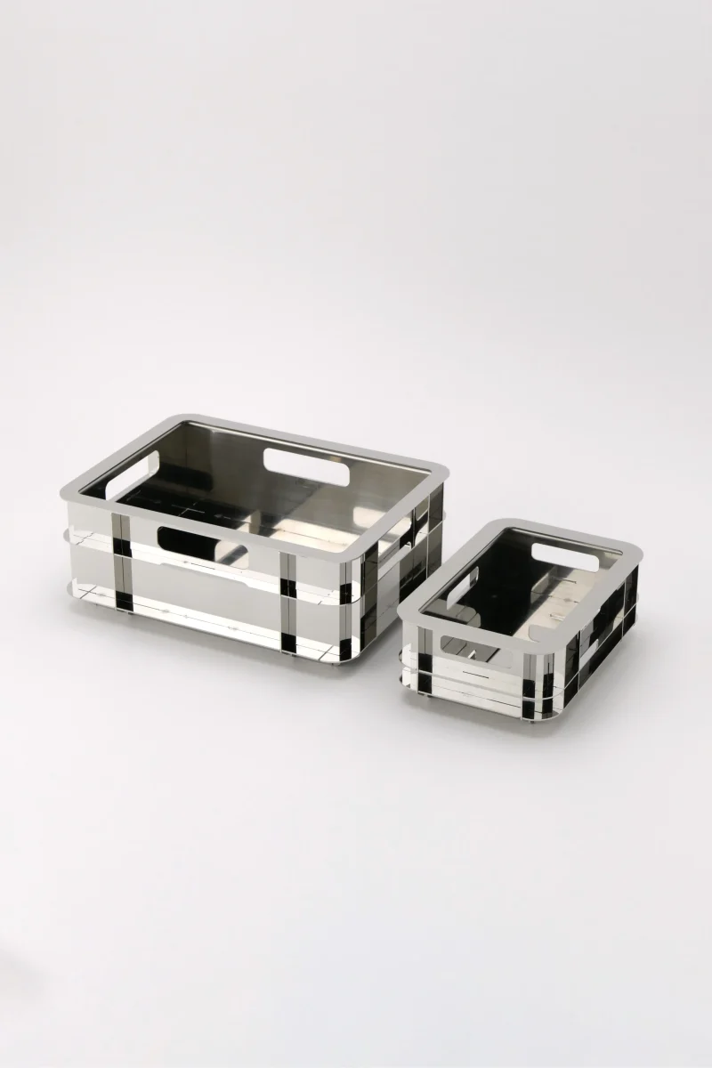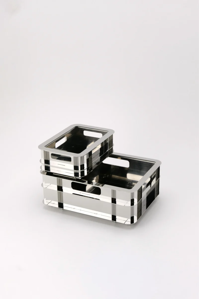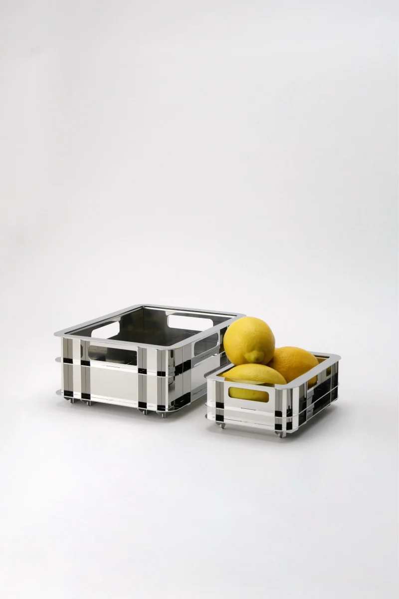 Inoxbox is based on an industrial transport crate whose shape remains unchanged, while the material has been replaced. The contrast between mass production and custom manufacturing, between everyday life and autonomy, transforms the crate into a new object with a familiar form.