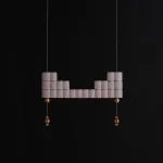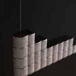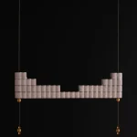 The atelier’s new project is inspired by this ancient object to create a modular lamp, composed of overlapping aluminium bars crossed by suspension cables that electrify the lighting body.
