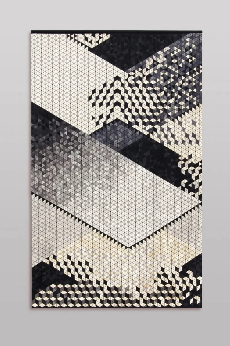 Strozyk founded her design label in 2009 after developing and launching her signature flexible hybrid material, Wooden Textile. To create this one-of-a-kind material, she harnesses traditional marquetry techniques to hand-place hundreds of individual wooden triangles onto a textile base. The tiles’ geometry and size influence the flexibility and mobility of the resulting floating solid pattern. Her multifaceted product portfolio also includes Ceramic Tables, a unique series of side tables made using experimental glazing techniques, and Woven Glass, a series of light objects that blends traditional weaving techniques with glass fusing.