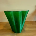 This console table by Nourhan Rabah features a sleek glass tabletop supported by intricately designed