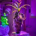 glass, coated with crushed glass, frosted with painter’s glass salt, crackled, live plant