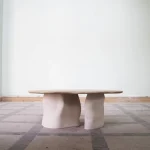 The Nü table is born from the encounter between clay and wood. Its chamotte stoneware legs, hand-shaped, converse through their complementary curves. The oak tabletop, also hand-carved, reveals itself like a pebble polished by sand. We also offer bespoke finishes, both in shades and dimensions, to ensure it perfectly adapts to each project.
