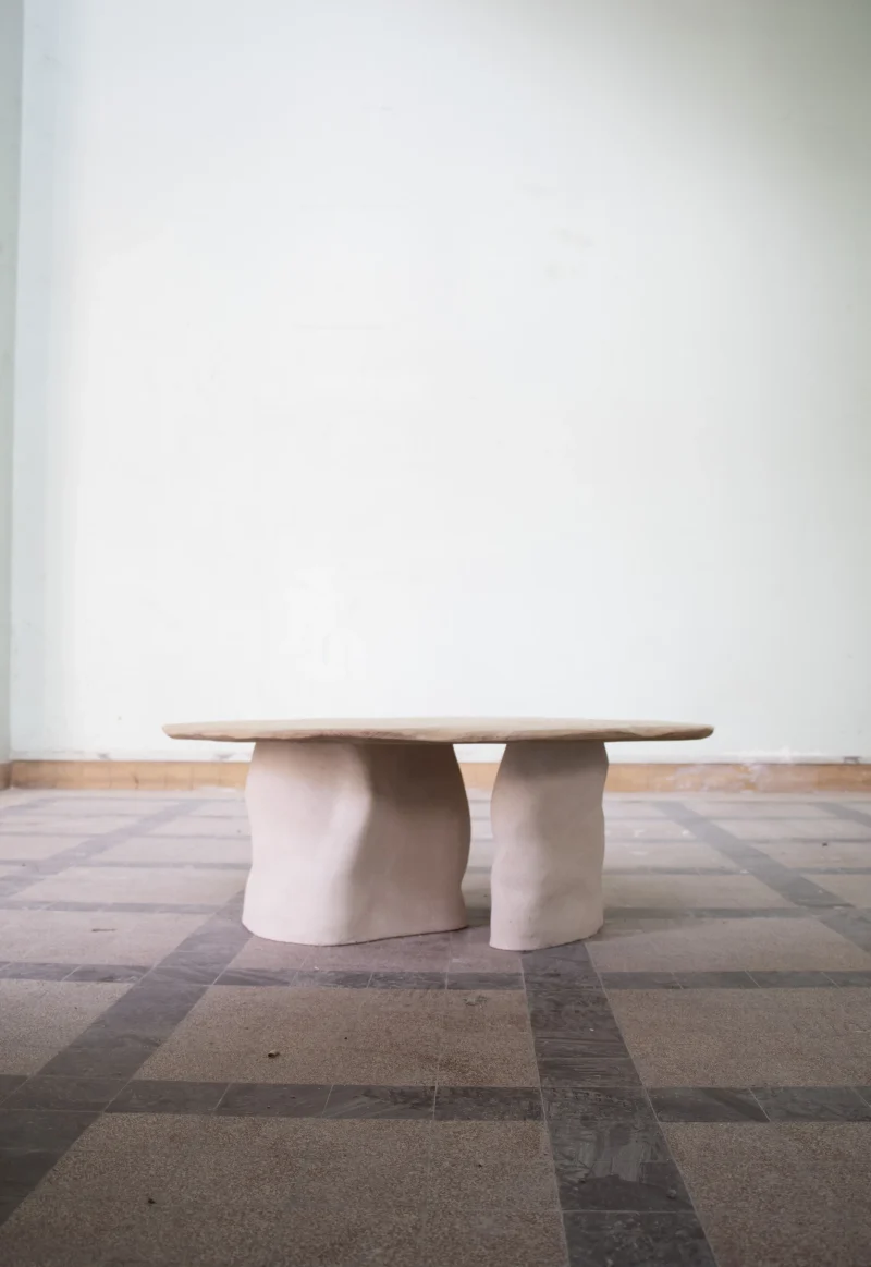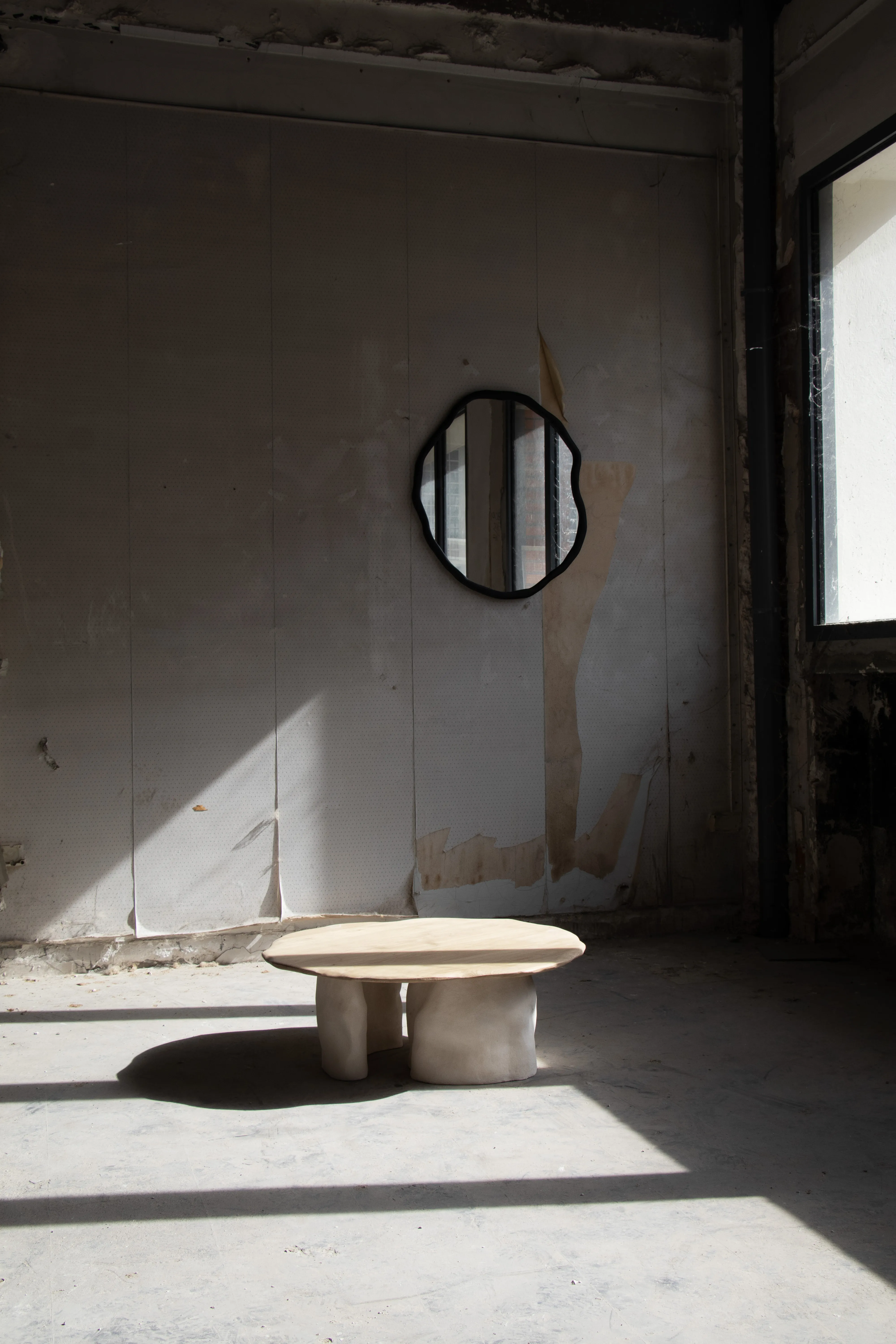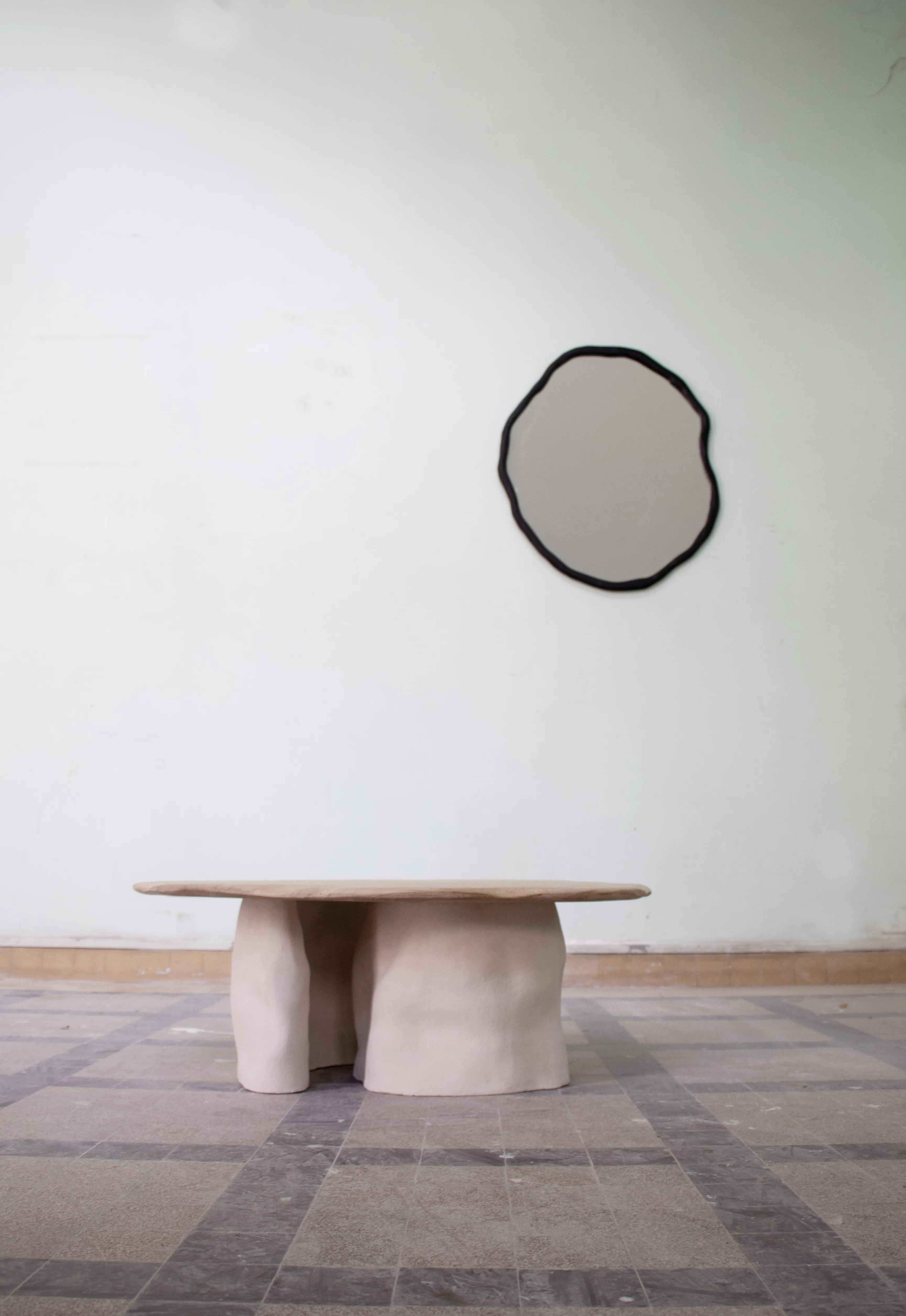 The Nü table is born from the encounter between clay and wood. Its chamotte stoneware legs, hand-shaped, converse through their complementary curves. The oak tabletop, also hand-carved, reveals itself like a pebble polished by sand. We also offer bespoke finishes, both in shades and dimensions, to ensure it perfectly adapts to each project.