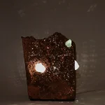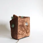 Lightening object remains a piece from a space but it’s only a found chunk of styrofoam on the beach by the Baltic Sea. It turned into a light shell of copper thanks to electroformed bath. Encrusted with natural minerals which shines the light from inside.