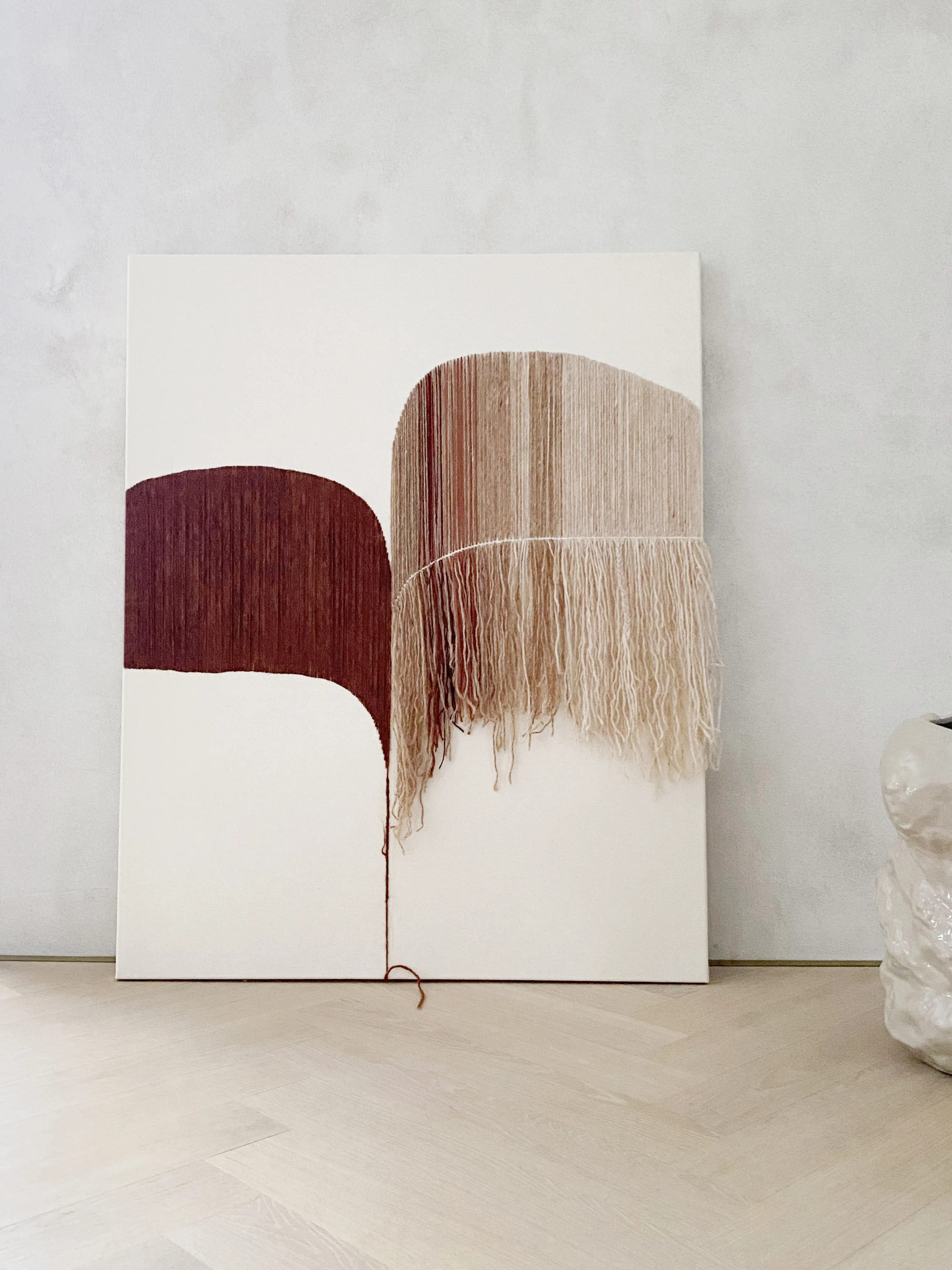 Materials: Wooden frame, canvas in coated linen, wool yarns hand-dyed in natural fibres