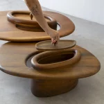 The ITA coffee tables collection by PROSA is inspired by Brazilian coastal stones, whose name in Tupy-Guarani means “stone.” Featuring fluid-shaped coffee tables with an integrated central chest and a strategically placed aperture that reveals the base’s form, the ITA collection evokes fond memories of the coast. The pieces, sculpted with smooth and organic corners, convey the sensation of having been shaped by the waves, rain, and time, bringing the natural poetry of the Brazilian coast into the home.