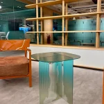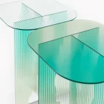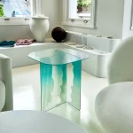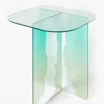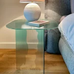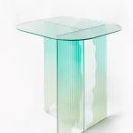‘Ivy-I’ stands out as a vibrant glass side table, encapsulating serene and therapeutic attributes. The coastal color palette elicits a feeling of tranquility and heart-opening. The legs, featuring a tree bark pattern, introduce a touch of nature, while the tabletop is adorned with smooth ribbed glass. Its versatility shines, making it apt for use as either a side table or nightstand. Ivy-I effortlessly melds visual allure with functionality, elevating any living space with its unique charm.