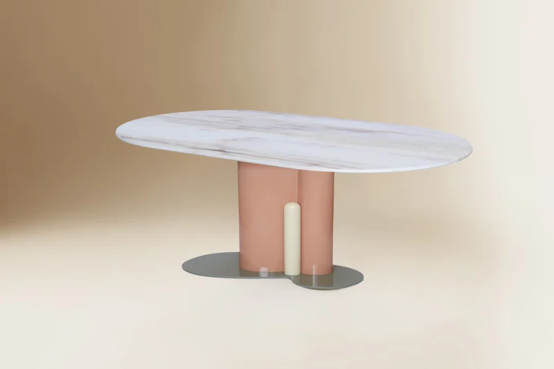 Crafted by DOVAIN Studio in Portugal, the Jack Dining Table stands as a sculptural piece, carefully handcrafted from metal sheets lacquered in various colors. Its curved lines and vibrant color palette infuse versatility and character into the design, making it a youthful, cheerful table that emanates positive energy into your space. Designed by Sergio Prieto, this piece incorporates elements of Space Age design, adding a futuristic touch to its visual appeal.