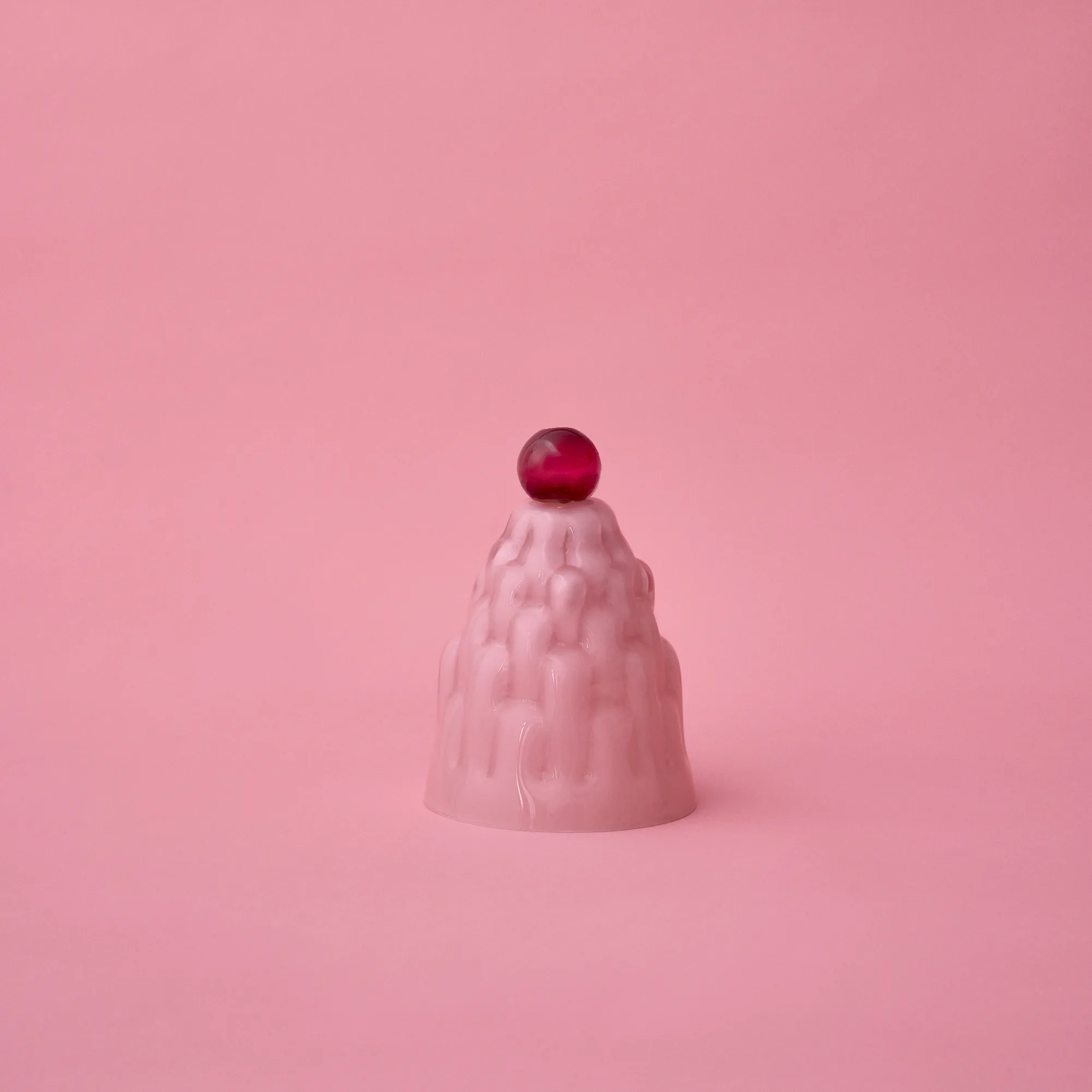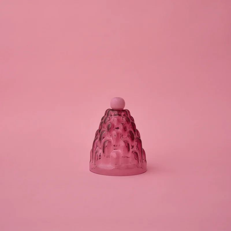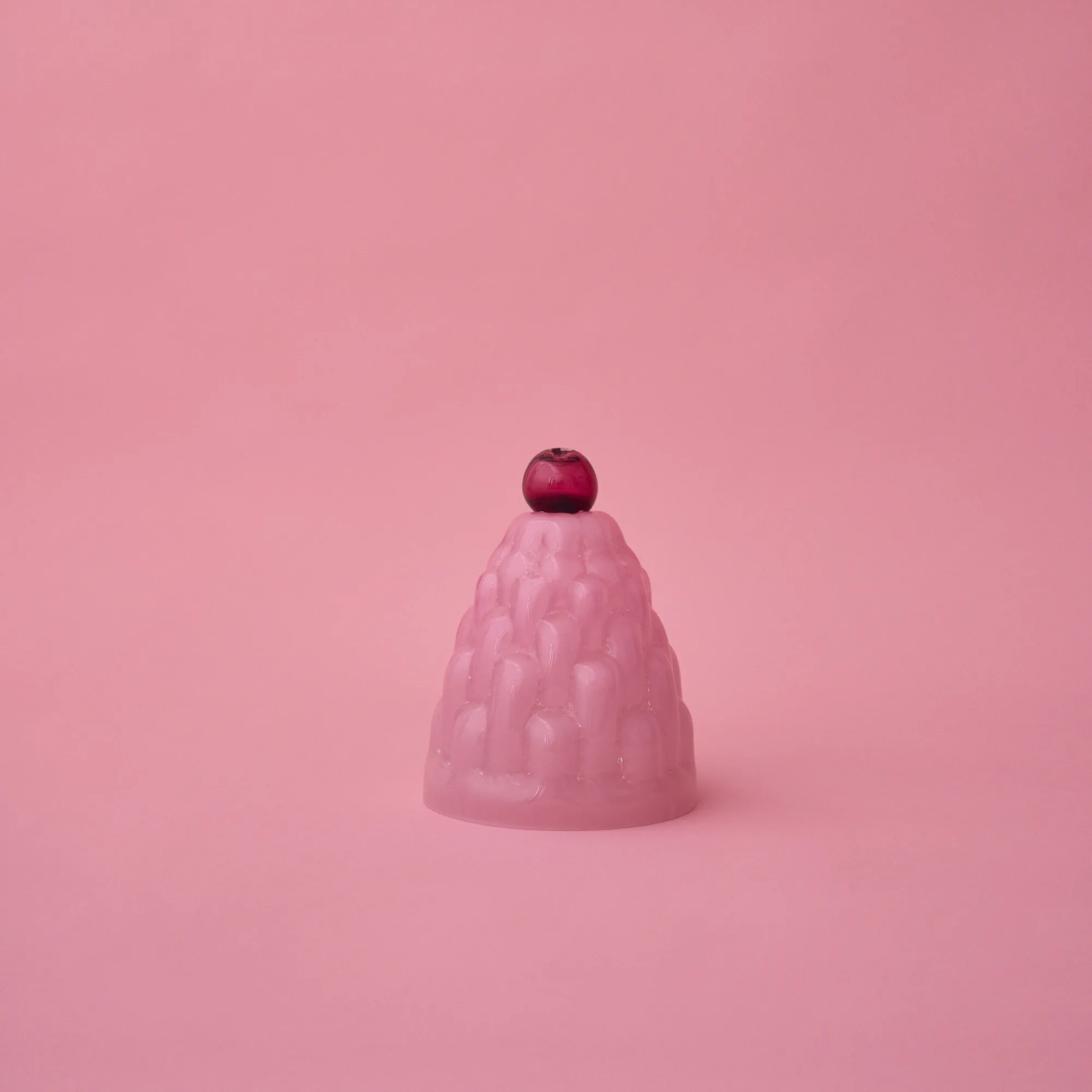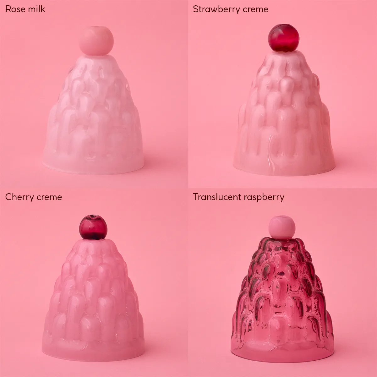 These vibrant glass cloches recall the soft curves of a wobbly jelly or creamy dessert and are available in five distinct forms and five shades of pink—ranging from opaque rose milk, light strawberry crème, and cherry crème to translucent raspberry and blackberry.