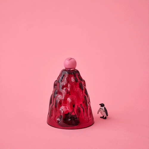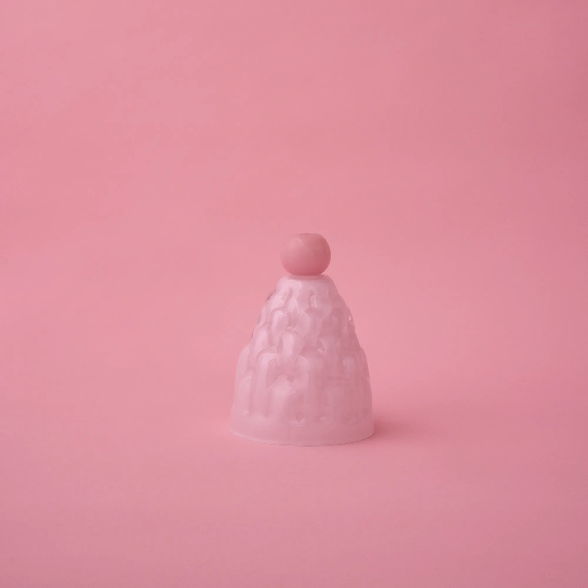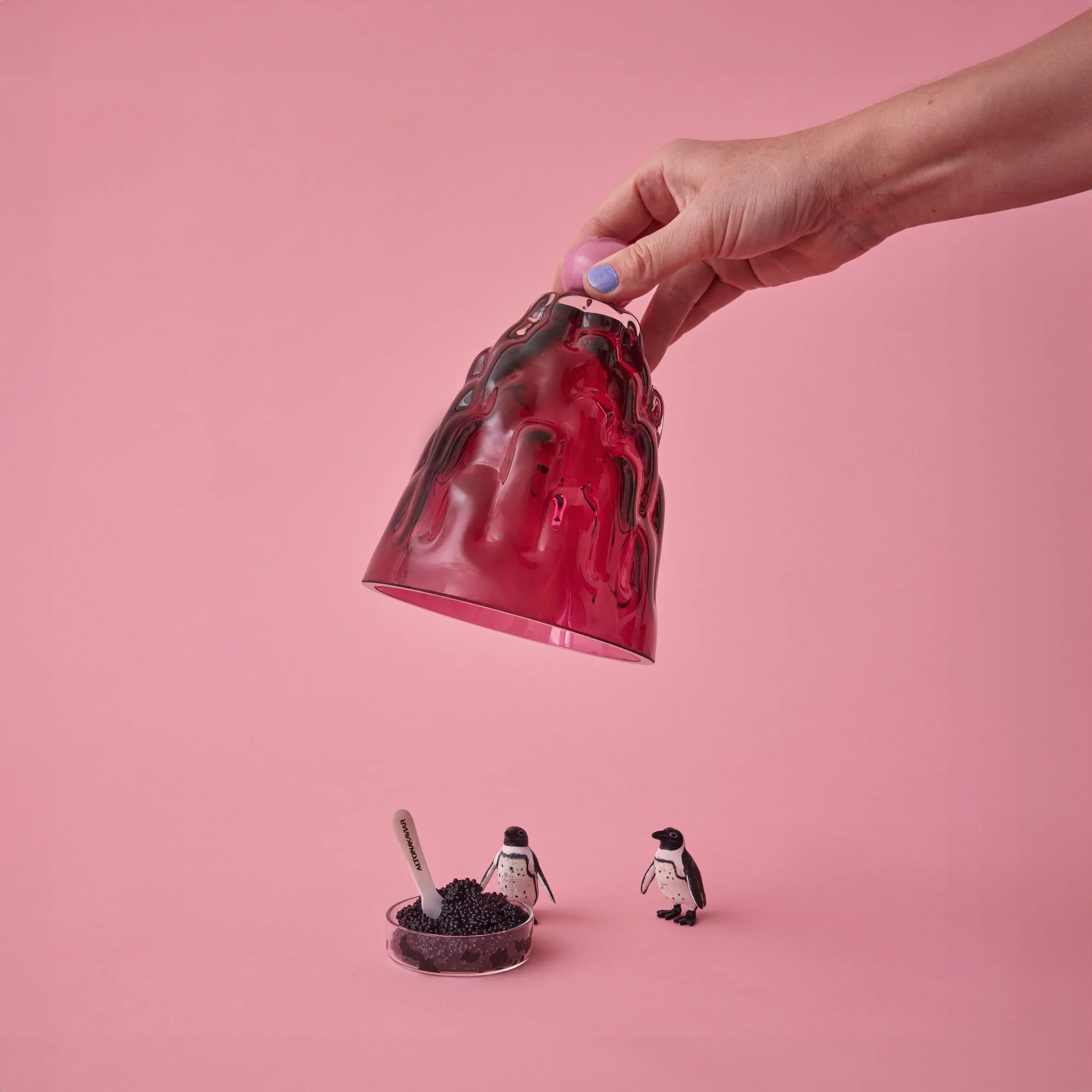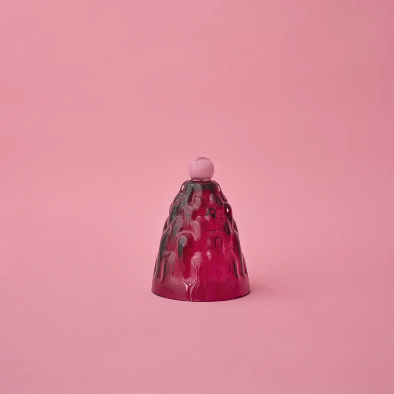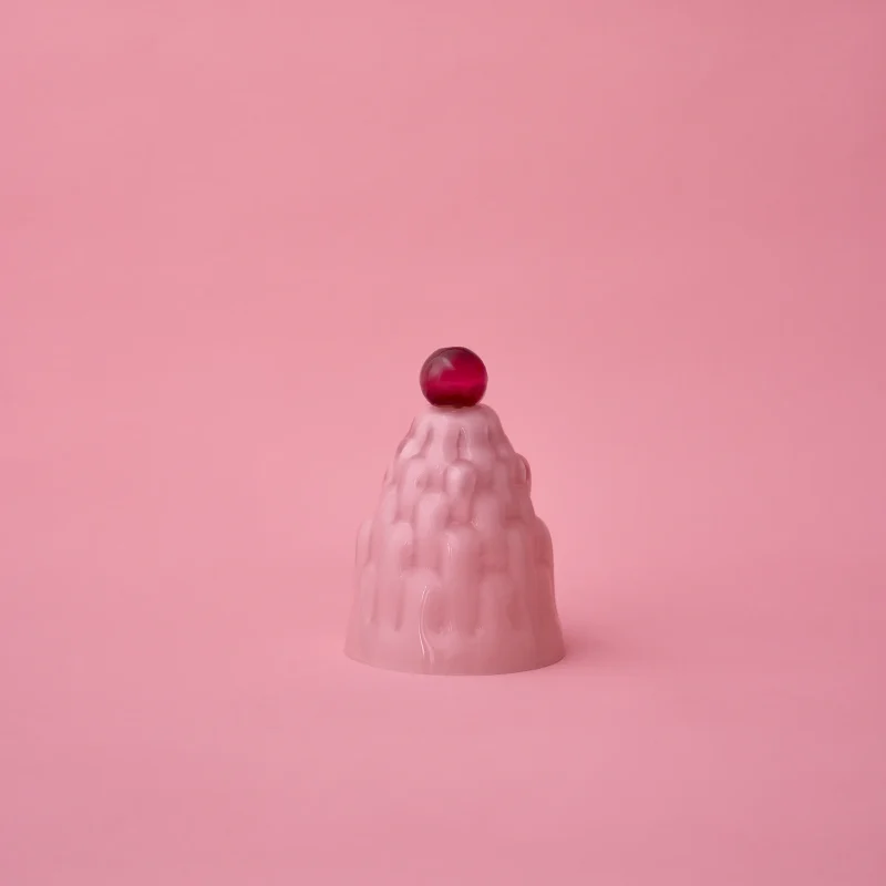 These vibrant glass cloches recall the soft curves of a wobbly jelly or creamy dessert and are available in five distinct forms and five shades of pink—ranging from opaque rose milk, light strawberry crème, and cherry crème to translucent raspberry and blackberry.