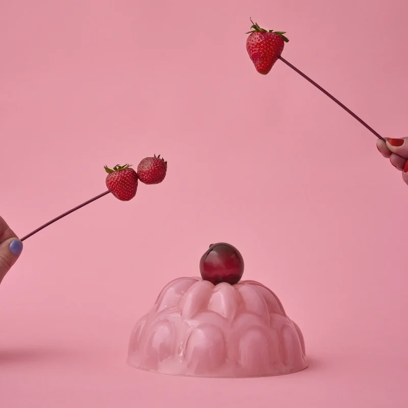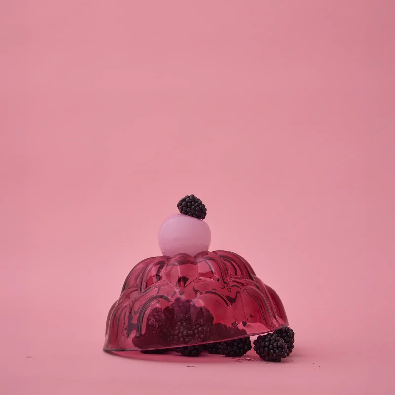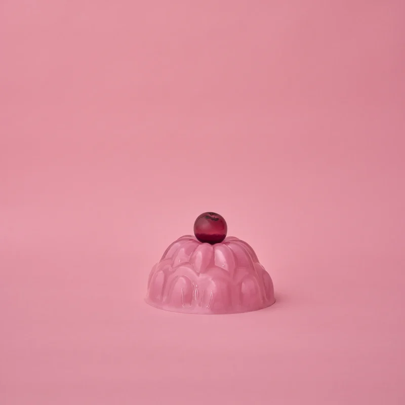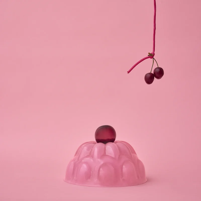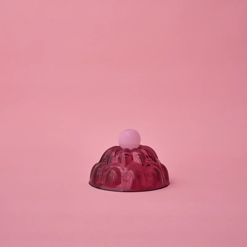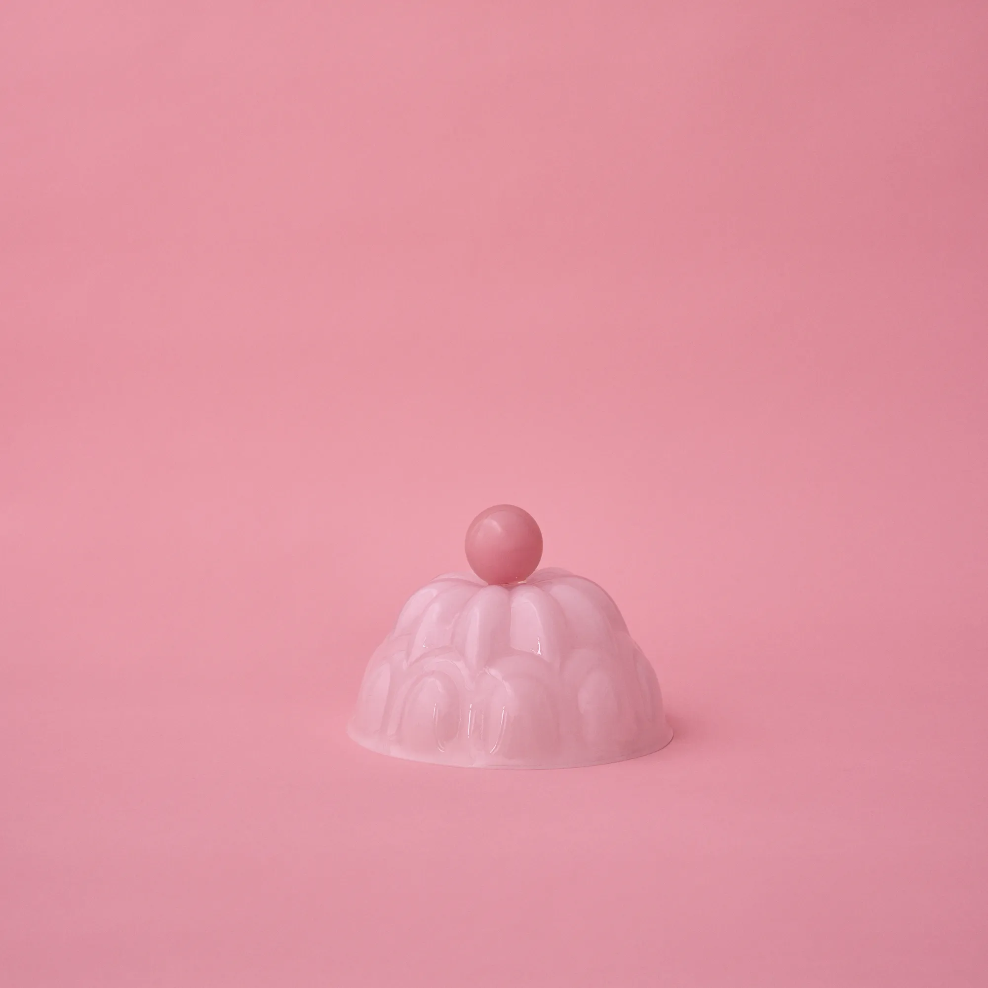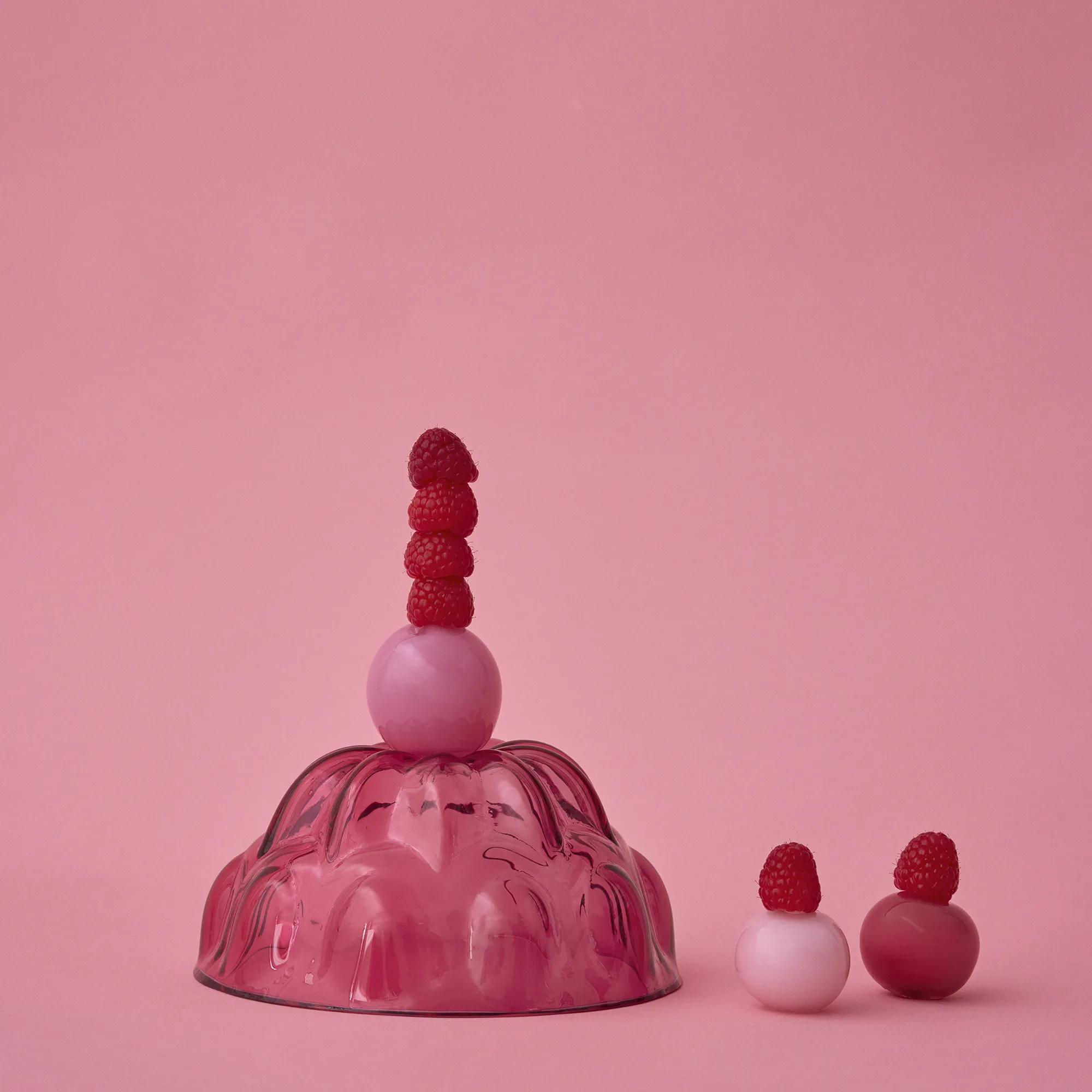 These vibrant glass cloches recall the soft curves of a wobbly jelly or creamy dessert and are available in five distinct forms and five shades of pink—ranging from opaque rose milk, light strawberry crème, and cherry crème to translucent raspberry and blackberry.