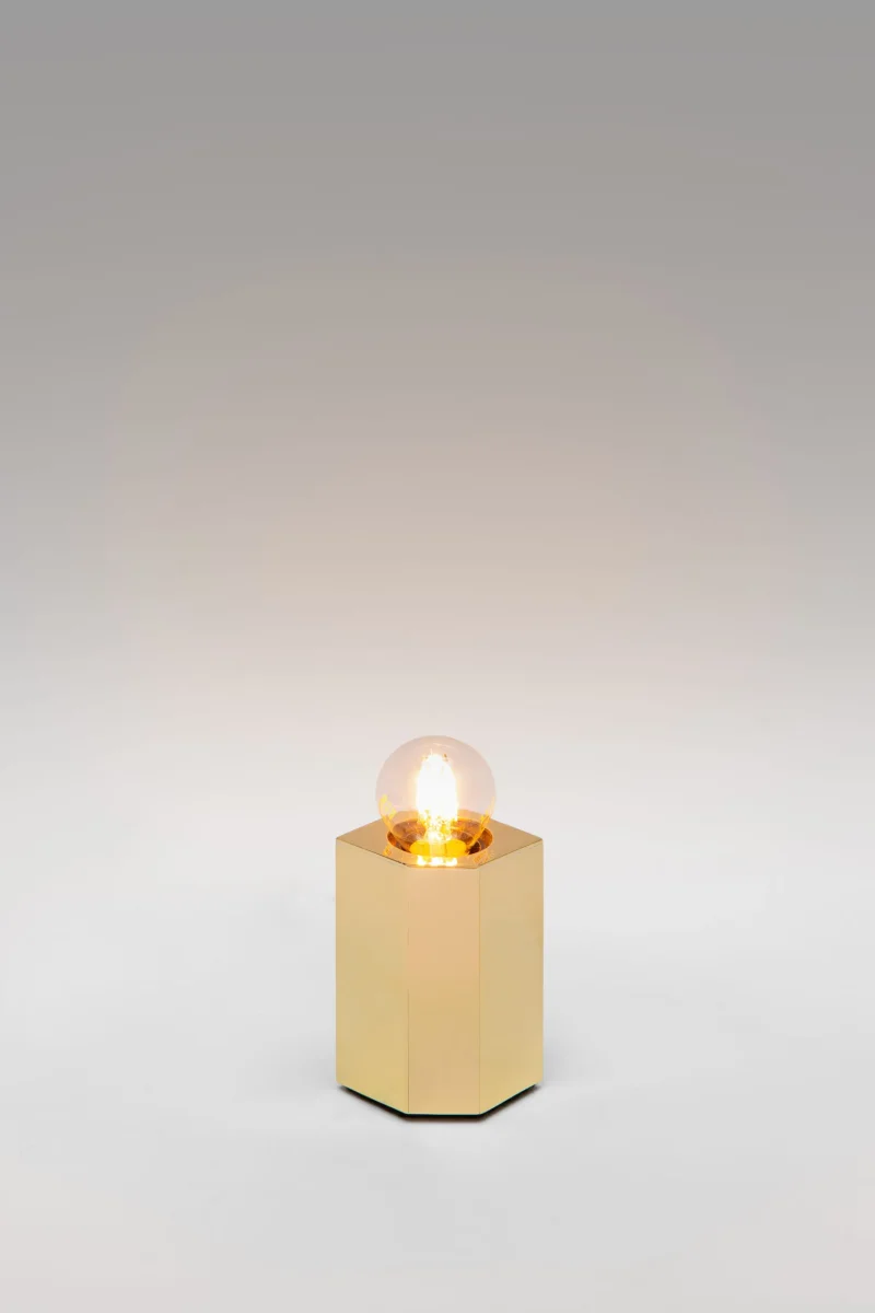 Small geometrical shapes, turned in gold. Like art, light objects can give warmth and inspiration. Koen has creates several light objects that give comfort for the soul.