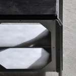 The JNK540 Console explores a dialogue between structure and surface, where industrial rigor meets refined craftsmanship. Its matte aluminum body, assembled with exposed fasteners, emphasizes precision and construction as a visual language. The modular openings define the façade, creating a strong graphic rhythm that evolves with light and perspective, while the elevated stance lends the piece an architectural lightness.