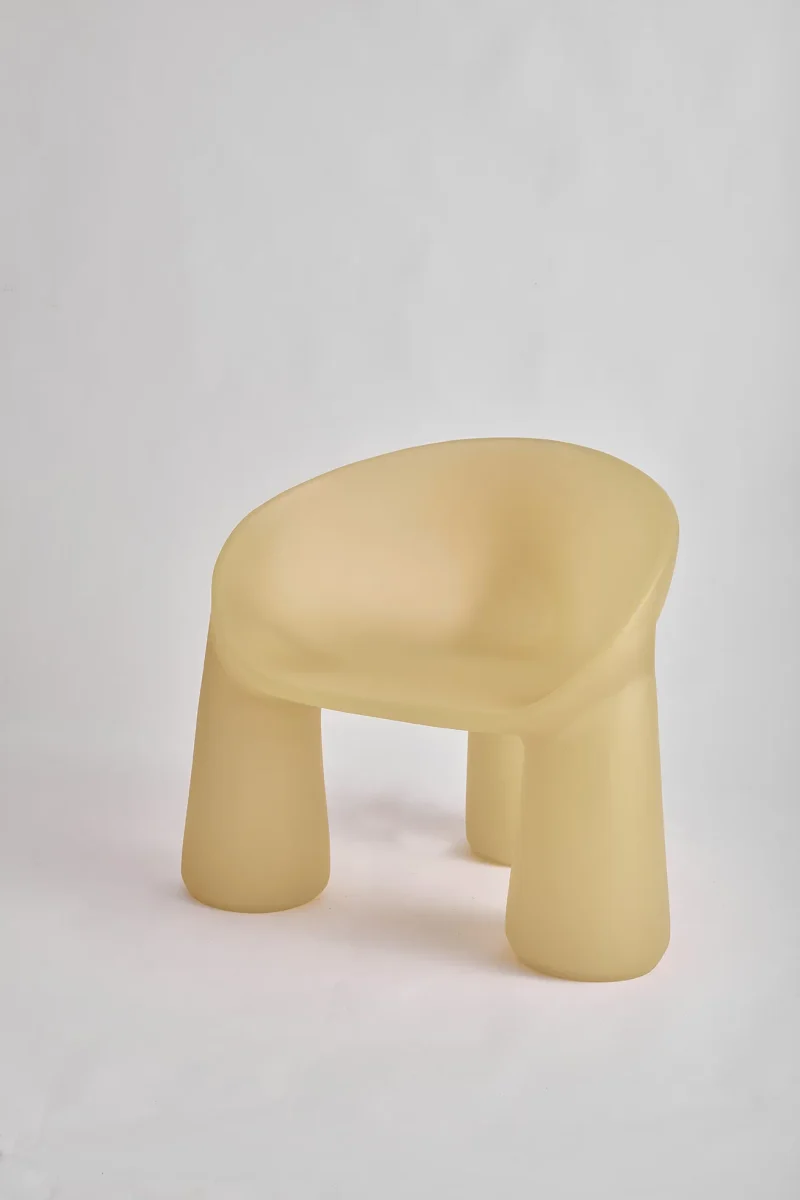 The “Jojo” chair is introduced as a new member of the Mexican studio “Joyful Objects, Yes!”. This chair has been carefully crafted using resin, which lends it a high level of sophistication while maintaining a playful essence. The resin provides an ethereal appearance without losing the vibrant colors that define the studio’s creations.