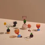 The “Joyful Glassware” collection reflects the designer’s need to surround herself with more colorful materials and shapes and to work with therapeutic methods that bring her joy in the design process.