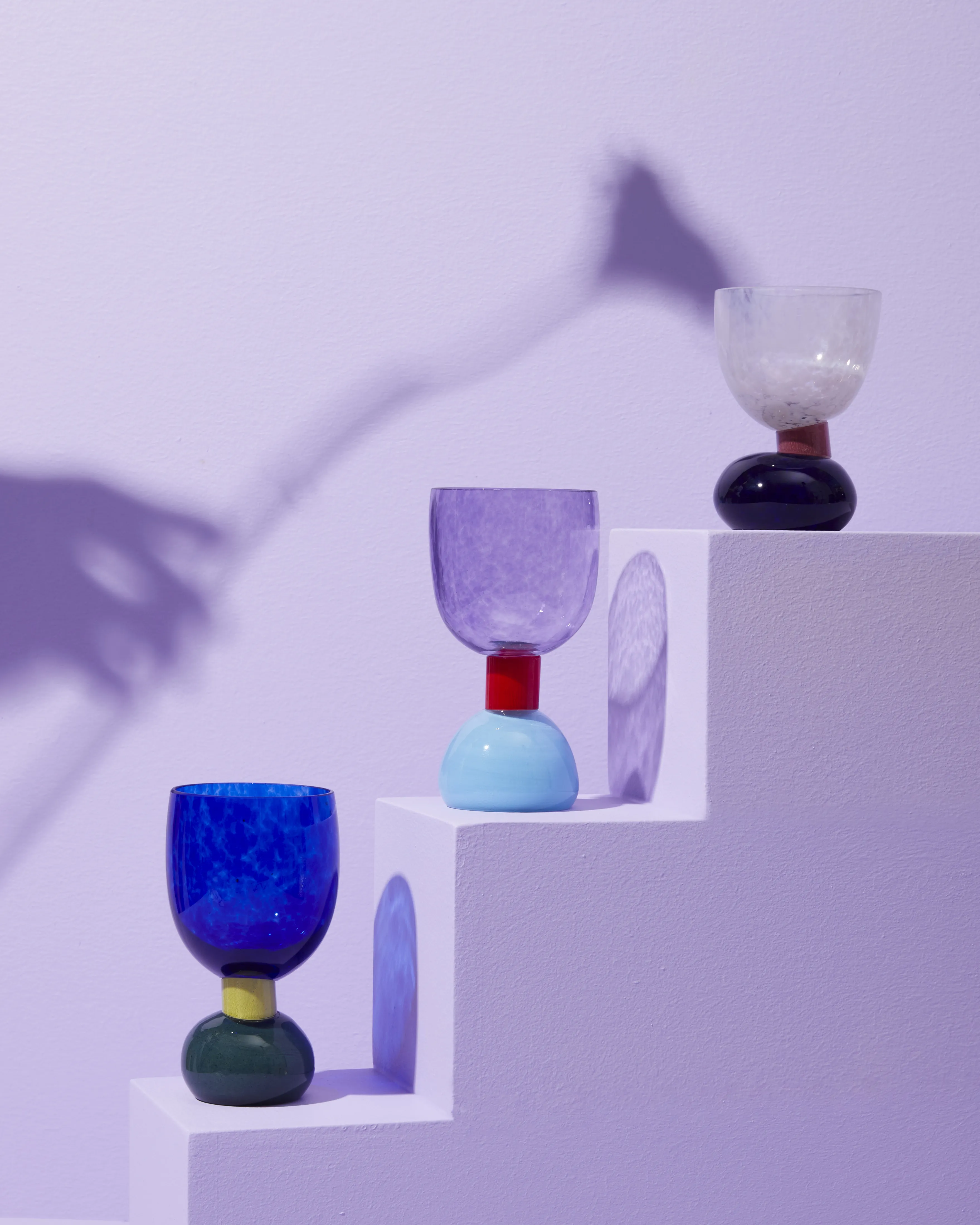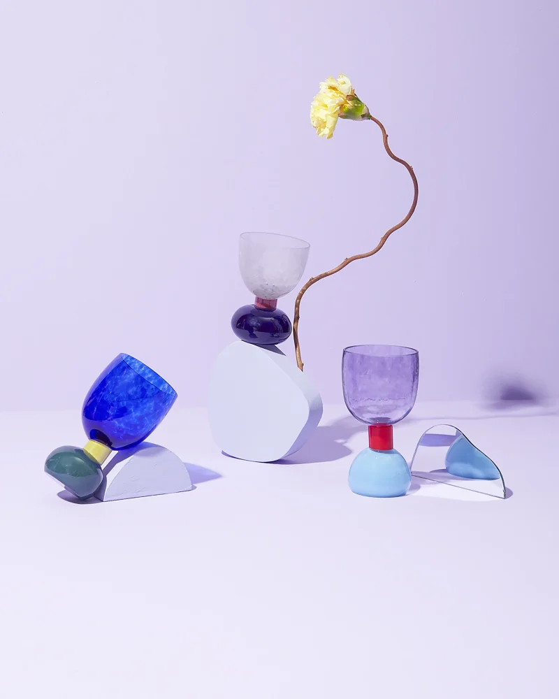 The “Joyful Glassware” collection reflects the designer’s need to surround herself with more colorful materials and shapes and to work with therapeutic methods that bring her joy in the design process.