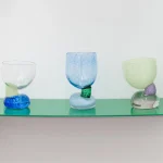 The glassware reflects the designer’s need to surround herself with more colourful materials and shapes and work with therapeutic methods that bring her joy in the design process.