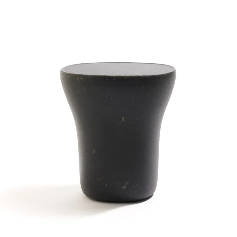 “Judy” Side Table is perfect for indoor and outdoor settings and is made entirely of recycled plastic that can be seen in its speckled pattern.
