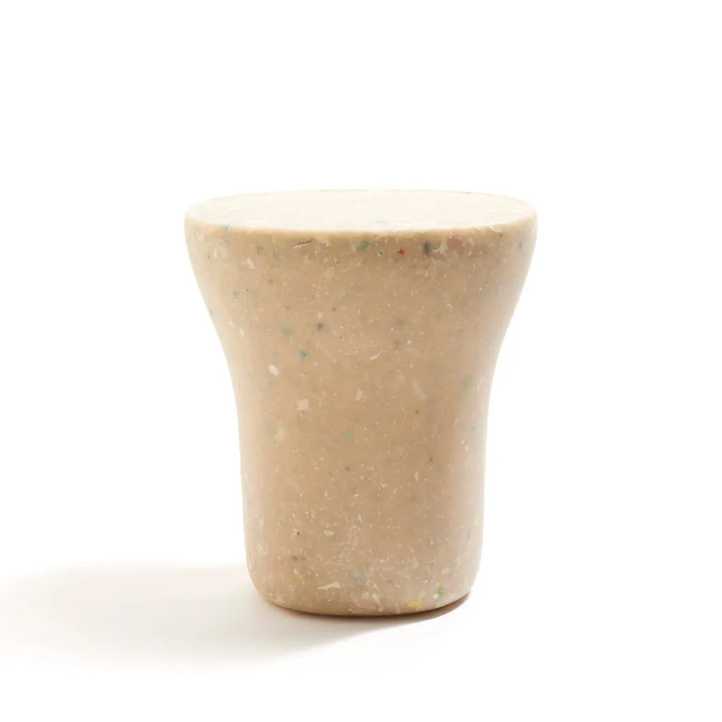 “Judy” Side Table is perfect for indoor and outdoor settings and is made entirely of recycled plastic that can be seen in its speckled pattern.