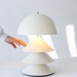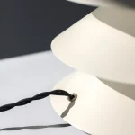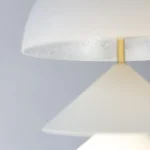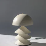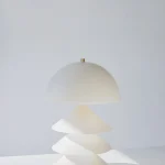 The Junius lamp makes a bold statement with its geometric stacked elements that appear almost to float above one another. The lamp is constructed with a lacquered steel shade and body, brass hardware, and a felt base. Inside the shade a surprise of hand-gilded genuine silver leaf reflects and amplifies the light emitting from the lamp.