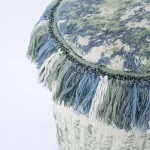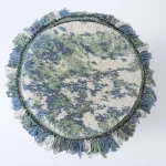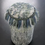 The graphic pattern of the ‘Kailani’ pouf reflects the fascinating play of water lines in an inspiring way, capturing the to and fro of the glittering water. The depth of the sea, the reflections of the sun and the dynamic play of the waves on the beach: with this picture, Mareike Lienau wants to visualize a transcultural space of memory, which she has set herself the task of creating.