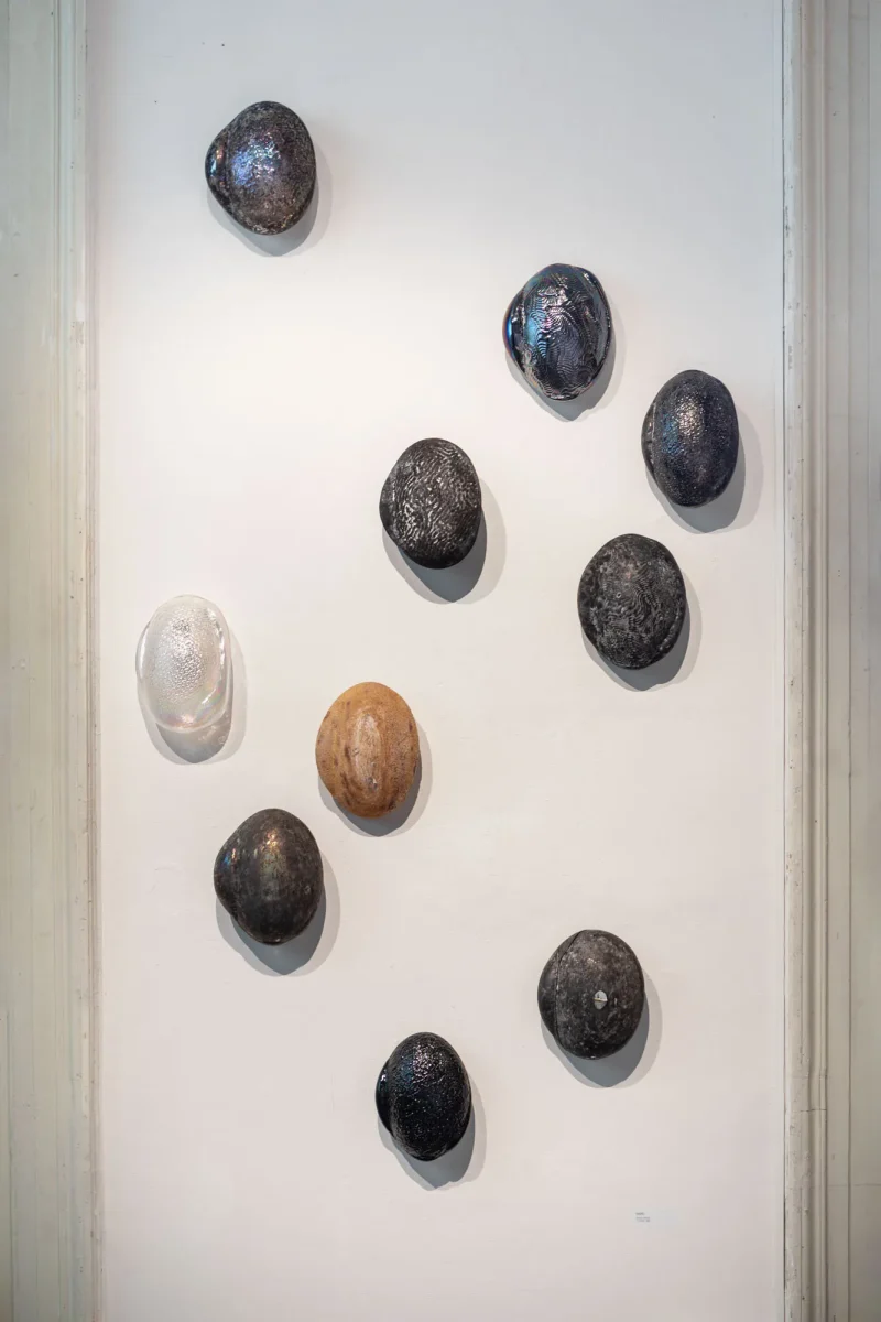 The artist deliberately simplified the shapes, distilling them into time-worn pebbles, stripped of specific identity to reflect their erosion by time and history. Intricately “fossilized” textures adorn the surfaces, preserving faint traces of an obscure, long-lost epoch—fragments of a narrative left open to interpretation.