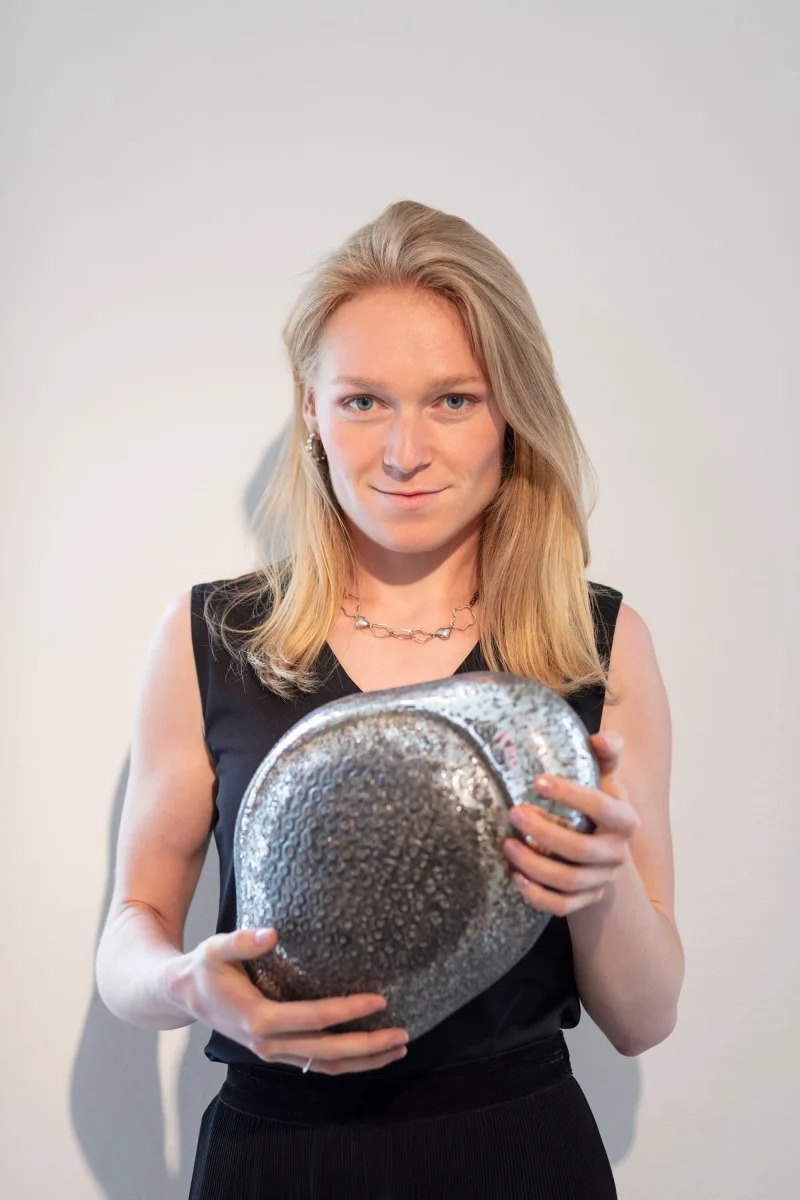 Anna Jožová (*1996) is a Czech artist and designer who works with glass on the border between free art and design. In 2023 she graduated from the Master's programme at the Glass Studio under the supervision of Professor Rony Plesl at the Academy of Arts and Crafts in Prague. Between 2016 and 2017, she studied in the Ceramic Design Studio under Antonín Tomášek at the Faculty of Art and Design at Jan Evangelista Purkyně University in Ústí nad Labem. Anna has been studying ceramics and porcelain since her studies at the Václav Hollar Secondary School of Art. Since 2018, she has presented her work in many collective exhibitions, fairs and art projects, e.g. at London Design Week, Venice Design Biennial, Czech Grand Design, Glassfest Karlovy Vary, etc., as well as in a solo show at the Kvalitář gallery in Prague. Apart from his own work, he also collaborates with designer Vlastimil Šenkýř, with whom he forms an artistic duo under the name Kombo. He has been consistently working on his own glass creation and design, combining different, at first sight disparate materials and classical glass techniques to create new unique objects. To understand Anna Jožová's work, it is essential that she does not work only formally and is not only focused on the visual effect of the work. On the contrary, she always carefully considers and chooses the form based on a given concept based on her natural interest in the surrounding world. This is also linked to a desire to explore and push the boundaries of glass as a creative material and to push its technical possibilities. Experimentation is therefore one of the most important approaches in Anna Jožová's work, thanks to which she finds new ways of working with glass. Combined with the conceptual background of most of her projects, this results in works that are design objects, but the way the artist creates and reflects on them moves them into the realm of free art. Since 2018, Anna Jožová has been creating a series of original vases, always responding to a currently explored theme. Some of these series are therefore partly related to each other, thus shifting the artistic and technological approach to new positions. Her most important creative theme so far is a reflection on the impact of human intervention on the environment, which she addresses, for example, in the Gaia, Keto and Nava series. At the same time, Anna Jožová's work is able to look back with a certain amount of humour at some moments of our everyday life (the Coquettes series, the Lisa vase, Hangover) and in some cases her work is almost a philosophical meditation on the existence of man and his connection to a certain time and place (the Kairo series, Chrono)