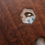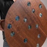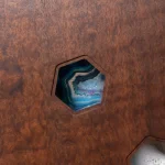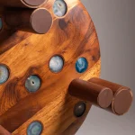 This nostalgic yet captivating effect served as the inspiration for Andreas Anwander’s “Kalaidoscope” series. Natural stones, set amidst mirrors embedded within elegantly crafted solid wood.