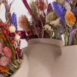 The true magic of the Katchka Vase lies in its ability to interact harmoniously with the floral arrangements it holds. The composition of flowers finds freedom within the vase’s form, creating a dynamic interplay between nature and design. Together, the flowers and vase form a cohesive whole, each element complementing the other to create a radiant, unified expression.