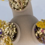 Crafted from sand-textured materials, the vase carries a tactile, organic quality that resonates with the natural world, evoking feelings of serenity and connection to nature. This sensitive materiality not only enhances its visual appeal but also enriches the emotional experience of the piece.