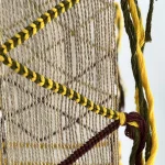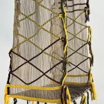 It brings together the artisanal work of Mehinaku women who harvest, clean, and prepare the buriti straw to make the thread with which they weave their traditional nets, and of Mehinaku men who enter the forest to find trees from which to take the wood to create zoomorphic benches adorned with charcoal and annatto-based graphics.