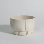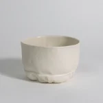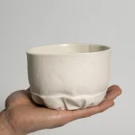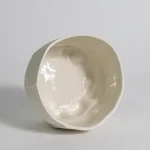 The Kawa Matchawan is a contemporary interpretation of the traditional matcha bowl used in Japanese tea ceremonies. Luft Tanaka applied his unique technique of slip-casting in a leather mold, leaving subtle marks and textures that give it a distinct, organic character. The soft, irregular shape contrasts with the coolness of porcelain, reflecting the tension between material permanence and the impermanence of fleeting moments.